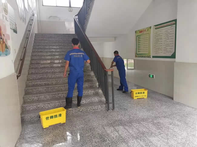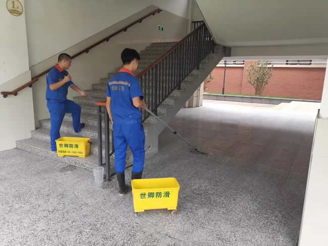 浙江省寧波市慈溪市龍山中學地面防滑處理順利完成。