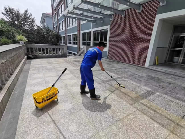 2019年7月22日【上海財經大學附屬中學】地面防滑處理完工,趁著暑假放假,使勁干