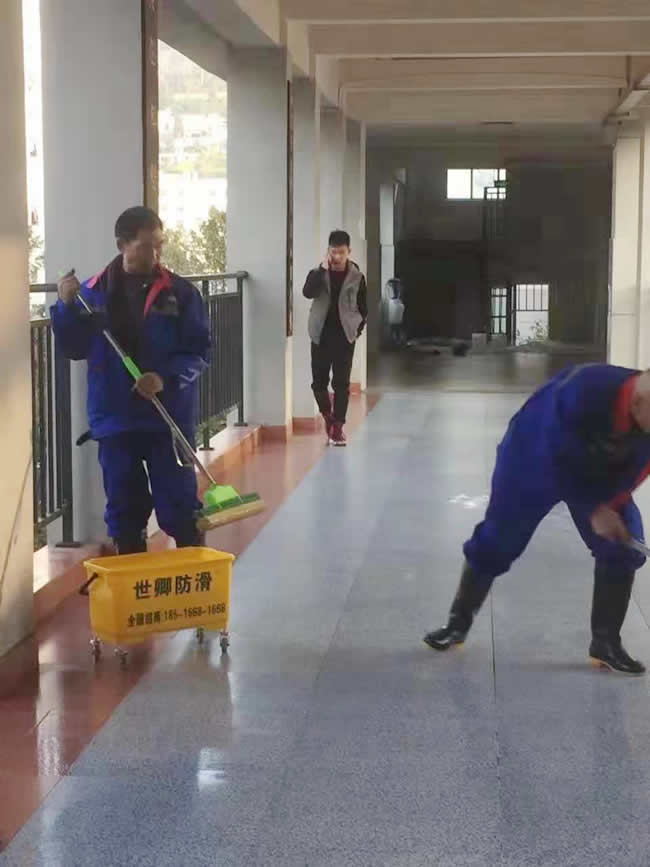 世卿防滑-【遵義團隊】走進遵義市桐梓縣第一中學,對學校走廊等進行防滑處理,為學校師生送去安全。防止意外滑倒,我選世卿防滑。