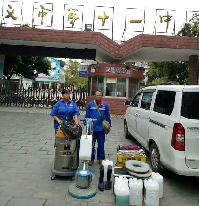 世卿防滑-【遵義團隊】9月27日,貴州世卿防滑工程有限公司(http://www.guizhousqfh.com/)走進遵義市第十一中學,對學校食堂及部分操場地面進行防滑處理,效果得到學校領導一致認可。選擇世卿防滑,讓你遠離意外滑倒。