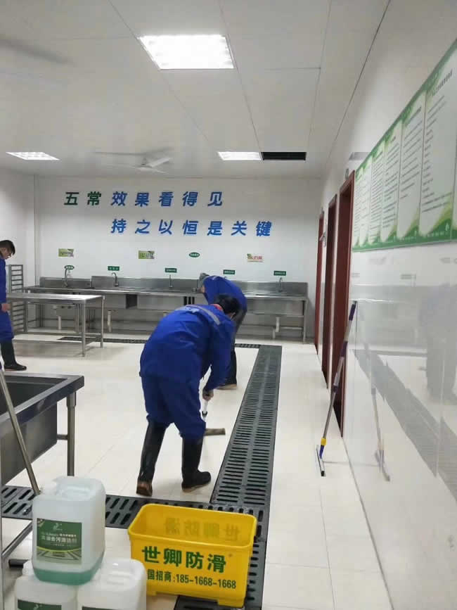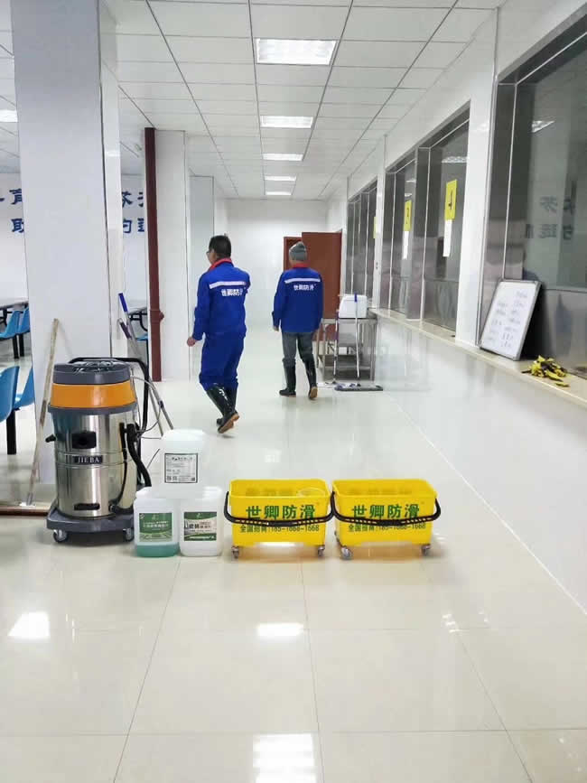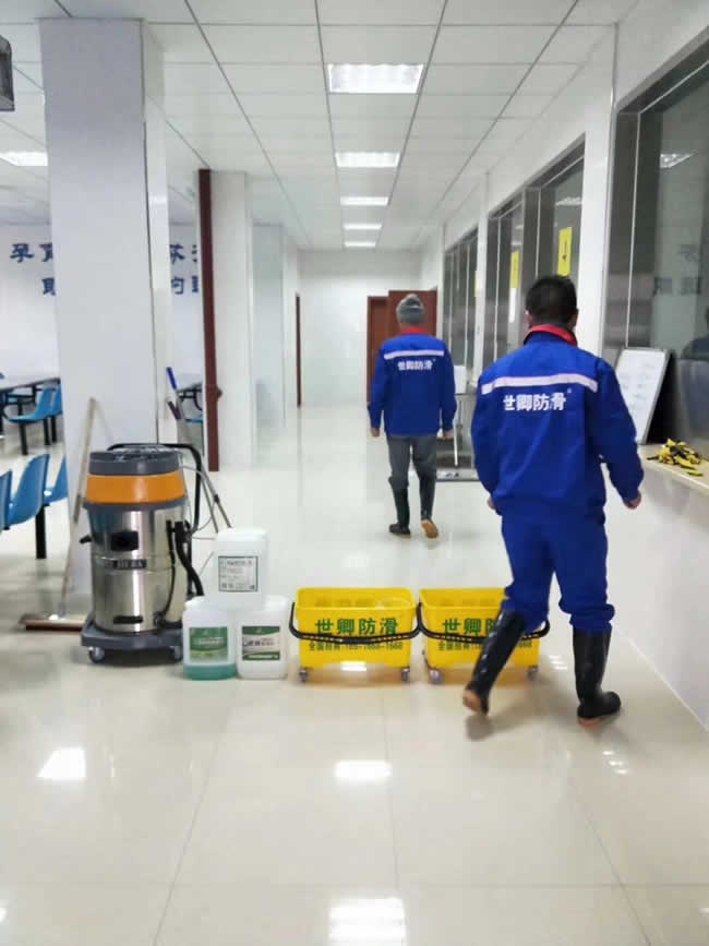 紹興【長城中學】校領導高度重視地滑問題,2018-1-6世卿防滑團隊為【長城中學】食堂餐廳地面進行防滑施工處理!世卿防滑——中國防滑行業領軍品牌!世卿防滑只做第一!