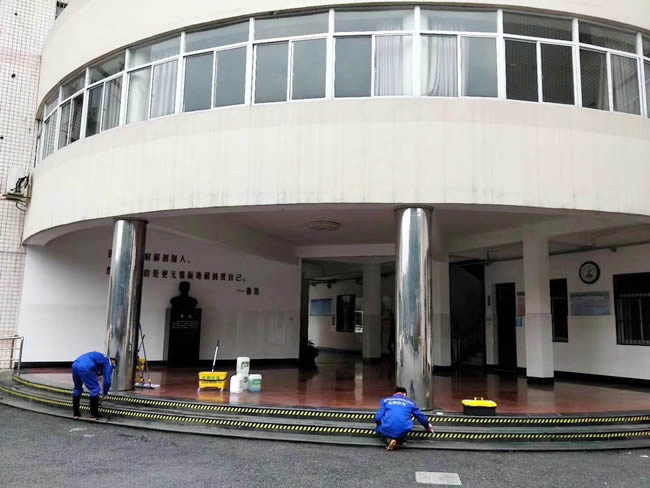 地面防滑不容忽視...,2017-12-2“世卿防滑”團(tuán)隊(duì)對(duì)紹興市豫才中學(xué)行政樓做了地面防滑工程處理,防滑效果深受校方的高度評(píng)價(jià)!!科技改變生活!