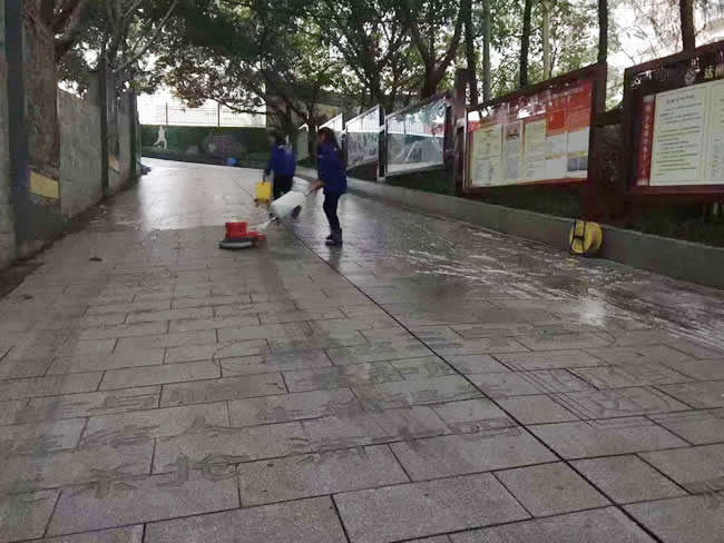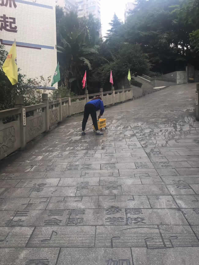 前期校方指定區域防滑處理的效果顯著。此次,校方對坡度廊道、路廊要求防滑處理,以保障雨天濕滑全校師生的行走安全。2018年11月24日-25日,重慶世卿經過材質的專業防滑鑒定和逐項工序的開展,圓滿完成達州市通川區實驗小學防滑施工!