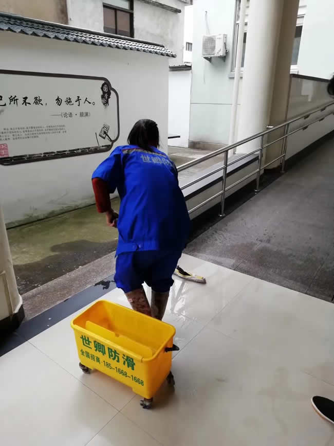 臺州世卿防滑的員工正在為臺州市哲商小學(xué)的走廊衛(wèi)生間做防滑處理,也非常感謝學(xué)校領(lǐng)導(dǎo)們對世卿防滑的支持和信任,關(guān)愛行走安全,防止意外滑倒。