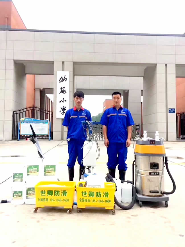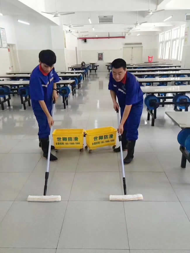 世卿防滑武漢分公司為武漢市仙桃小學(xué)兩個校區(qū)食堂做防滑施工,學(xué)校領(lǐng)導(dǎo)對地面濕滑問題非常重視,我們?yōu)閷W(xué)校解決了地面安全隱患!