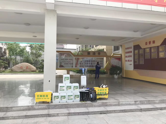 防滑技術哪家強,上海世卿響當當,國內防滑大品牌,值得信賴,感謝衢州市衢江區第二小學校領導對我們世卿品牌的信任,第二批地面濕滑處理工程順利結束同時也為充滿愛心的校領導點贊,關注行走安全,防止意外滑倒摔傷。