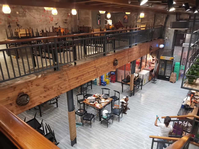重慶市重慶大學城【守柴爐烤鴨】餐廳地面防滑施工