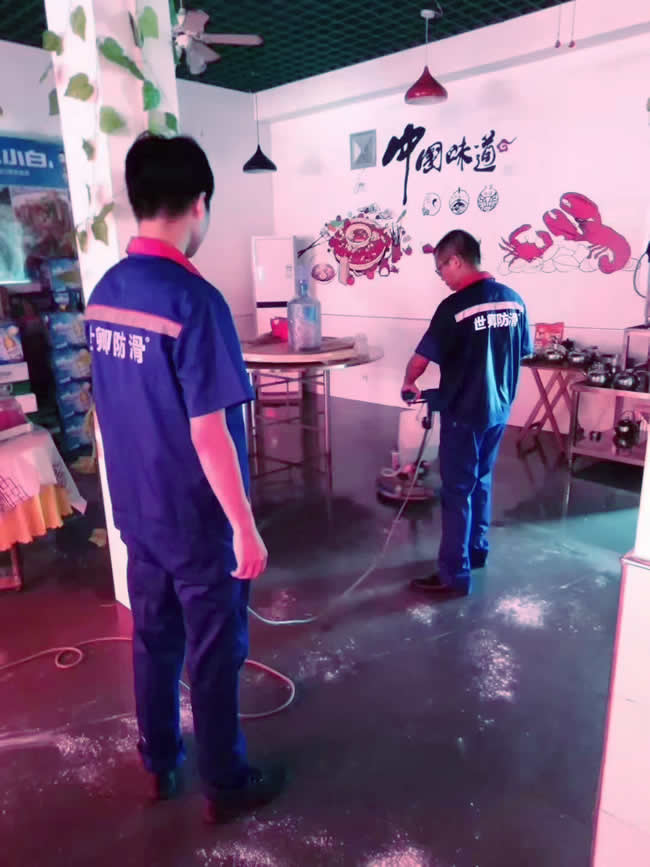 湖南長沙市香樟路岳陽三毛燒烤地面防滑施工處理