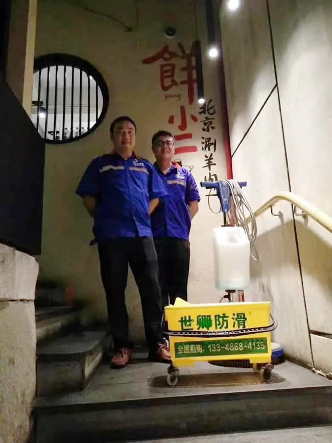 湖南長(zhǎng)沙市䬺小二火鍋店地面防滑施工處理