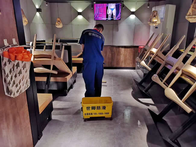 上海市青浦區《紅盔甲小龍蝦餐廳》地面防滑處理