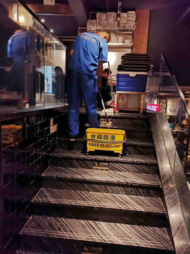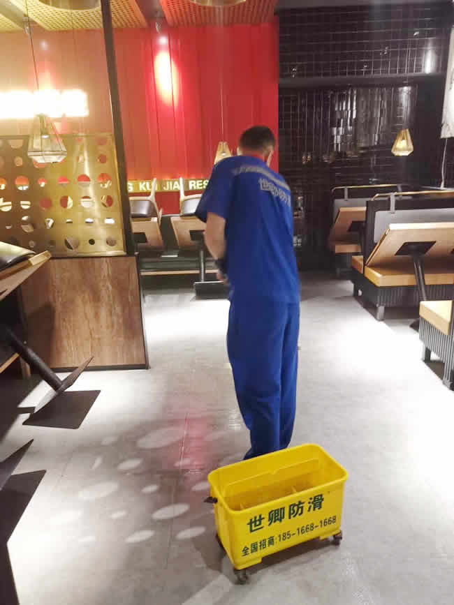 世卿于2019年6月11日凌晨通宵完成《上海青浦區紅盔甲小龍蝦餐廳》地面防滑處理。此單生意源于之前防滑客戶的介紹以及世卿防滑效果實力的體驗給到客戶的信任,紅盔甲小龍蝦全國連鎖,接下來的店面合作已進入洽談中,感謝客戶的信任,感謝世卿人的堅持及研發。再巧不過的是剛好是我5/27~5/28出差到上海學習培訓的時候接到的單,5/27打樣完城,客戶體驗后果斷選擇,因餐廳日常生意太好及施工隊排期沖突于6/11完成防滑防護施工及驗收。感謝客戶的信任,只有實力說話才能有源源不斷的客戶,世卿一直在堅持奮斗的路上~