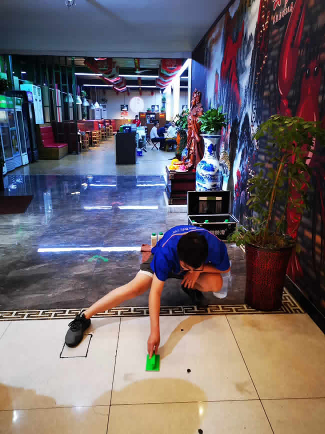 世卿防滑-山東濟南團隊2019-6-4完成了山東濟南市【云俠龍蝦館】餐廳地面防滑施工,世卿防滑助力餐飲行業,關愛行走,防止意外滑倒……