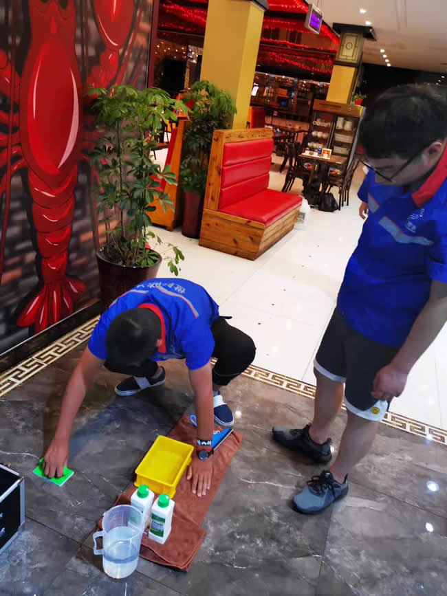 山東濟南市【云俠龍蝦館】餐廳3000平大廳防滑施工