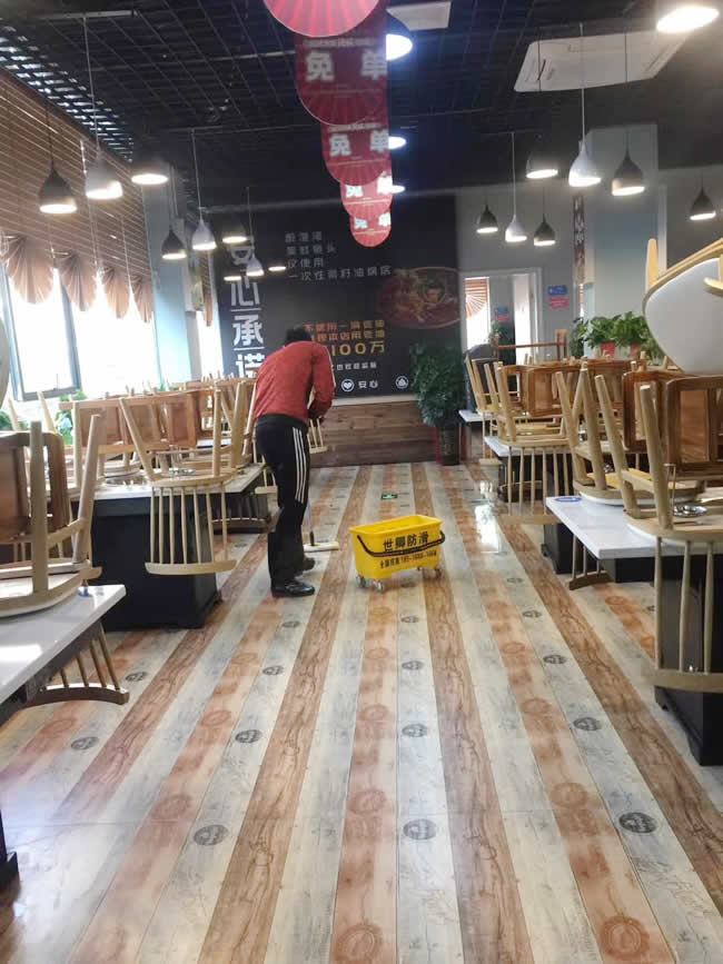貴州黔南都勻市平橋社區【美蛙魚頭火鍋】餐廳地面防滑施工