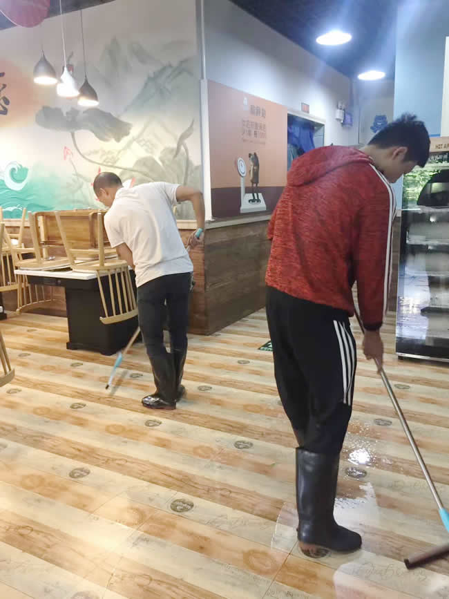 世卿防滑-貴州都勻市團隊2019-6-3完成貴州黔南都勻市平橋社區【美蛙魚頭火鍋】餐廳地面防滑施工,他們家的地面不滑了,歡迎大家去吃火鍋,祝老板生意興隆,需要做地面防滑的請聯系電話15338555198