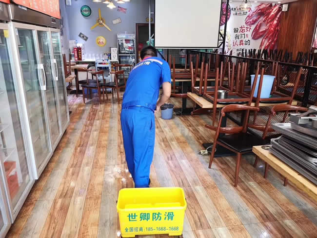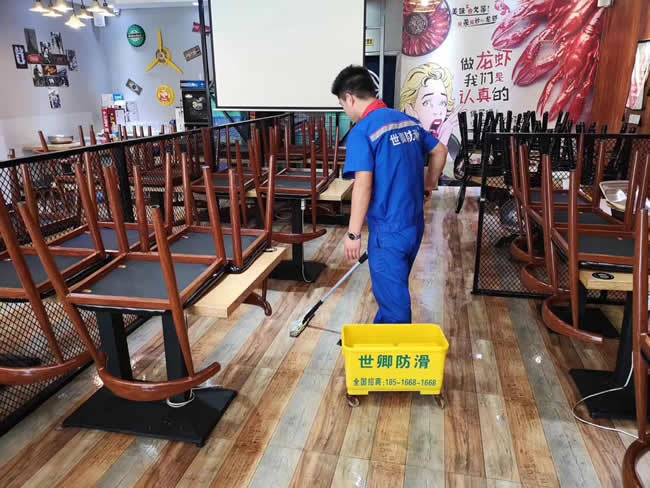 松江區新橋鎮新育路809號【赤道海鮮燒烤】地面防滑5月23號處理完成。