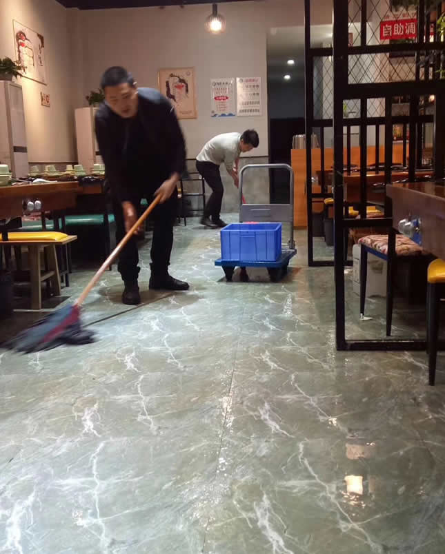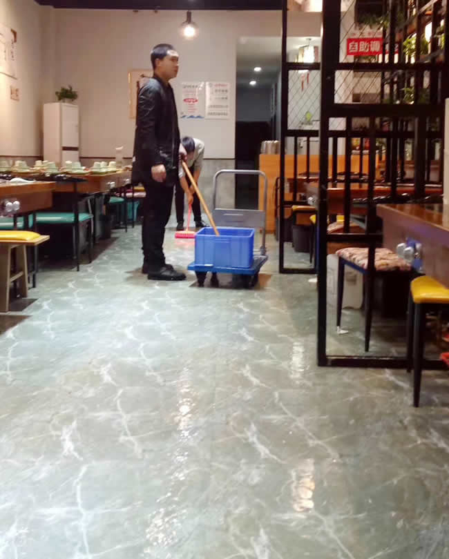 四川內江市資中縣【軒貨魚撈】餐廳地面防滑工程