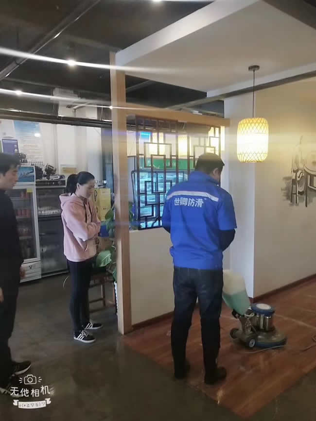 18955967779因為專注,所以專業 2019年3月6日,下午,晴。黃山市屯溪區濱江中路【舅媽家徽州美食店】,地面防滑治理施工完成感謝老板娘王美女的選擇與信任,請放心行走。