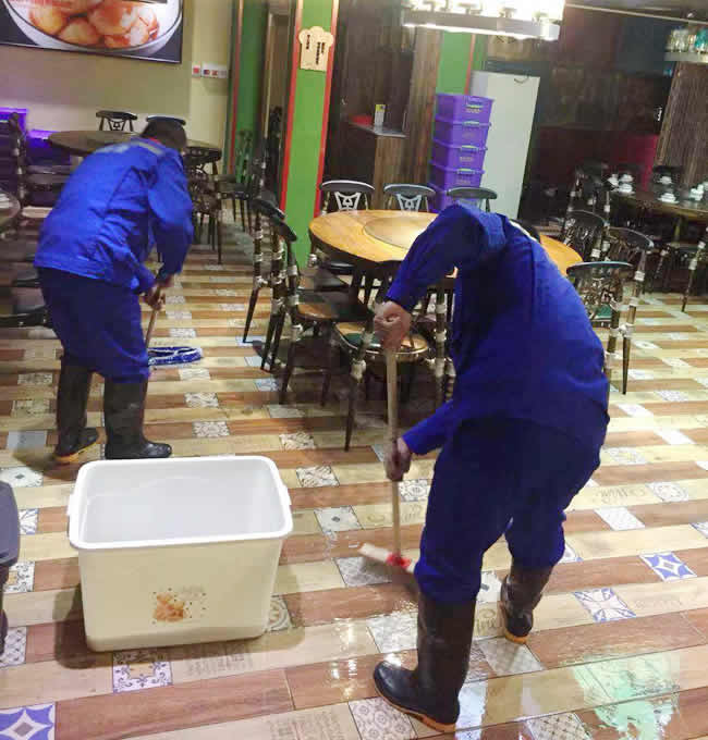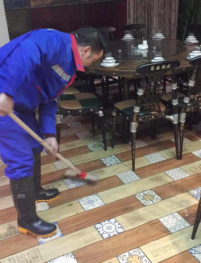 湖南長沙市家感新廚餐飲管理連鎖品牌客用區(qū)域地面防滑施工