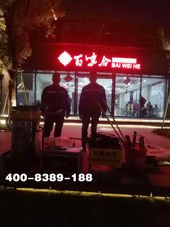 世卿防滑-【遵義團隊】21日晚至22日凌晨,遵義市新蒲新區白鷺湖百味合餐廳茍總,本著為顧客提供安全放心、舒適溫馨的服務為準則,誠邀我公司(貴州世卿防滑工程有限公司http://m.guizhousqfh.com/)對其餐廳大廳、過道、廁所、廚房及庫房等進行地面防滑處理,效果滿意,得到在場員工及顧客一致認可。