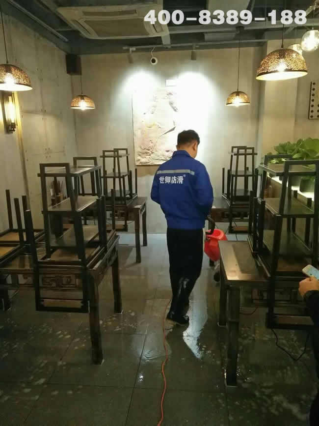 世卿防滑【廣州團隊】將近年底放假了,客戶的需求和需要,我們依然一直在堅持著,廣州市小林功夫餐廳地面防滑工程。