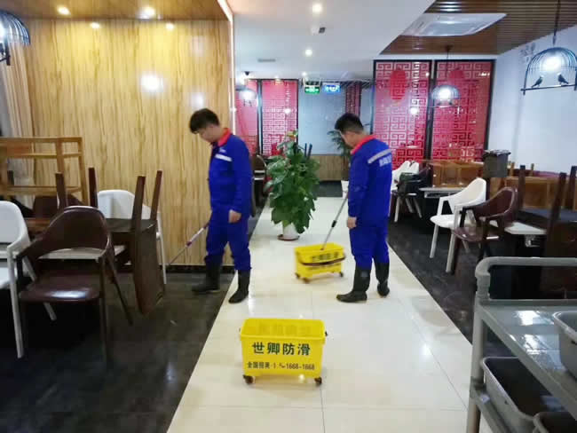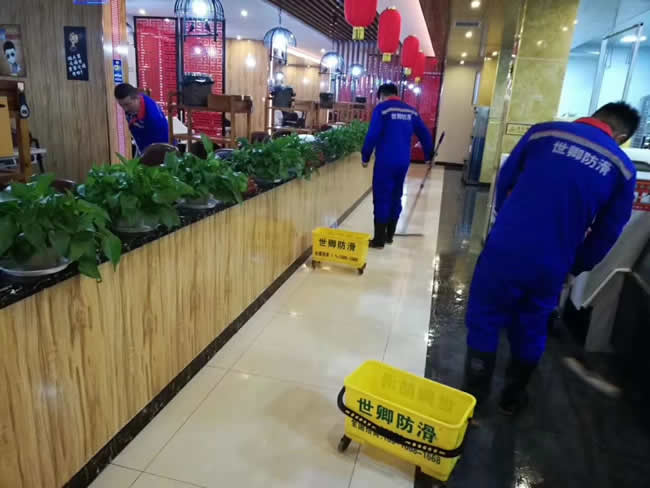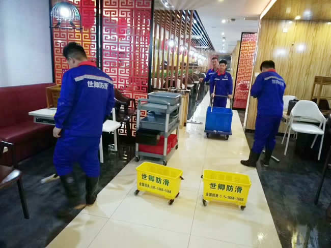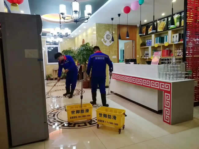 青島市萬達廣場施工,巧遇重慶劉一手火鍋店老板,覺得我們施工效果非常理想,要求連夜為他店里處理地面防滑。