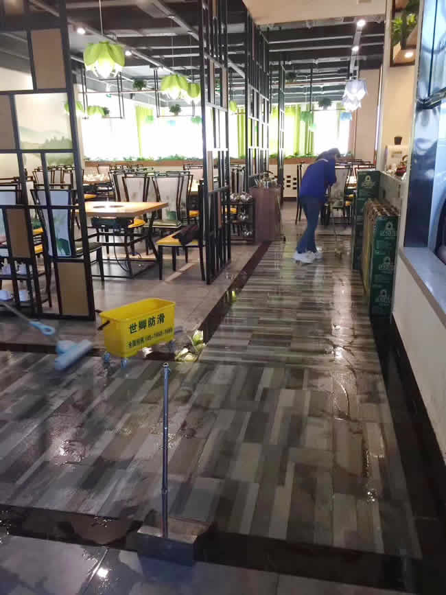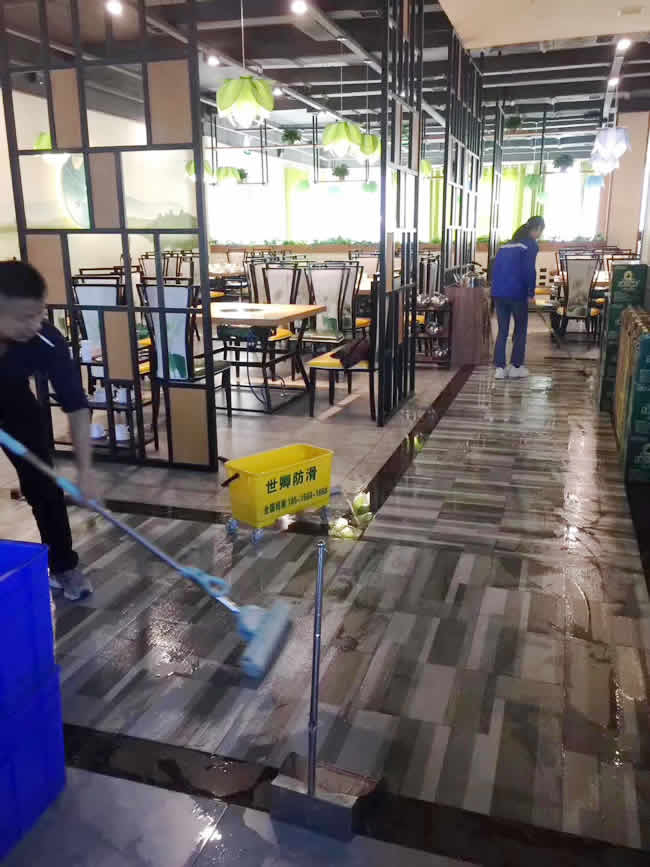 四川南充市巜藕然間》連鎖店專注藕湯餐廳生意異常火爆,世卿防滑重慶公司南充服務處的員工馬上就要結束施工了。店主說真不滑了耶。