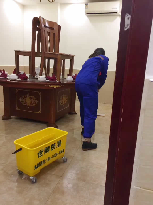 丟掉了喜歡滋生細菌切又不美觀的地毯選擇了對瓷磚不失原貌,切防滑系數可達百分百的世卿防滑,四川南充市南部縣《御香園》中餐食府的女強人楊總,一直把顧客利益放在第一位,員工安全福利放心️間,今天晚上下命令必須完成大廳、包間、衛生間的所有防滑施工。