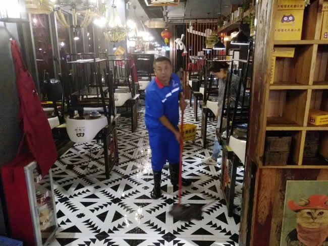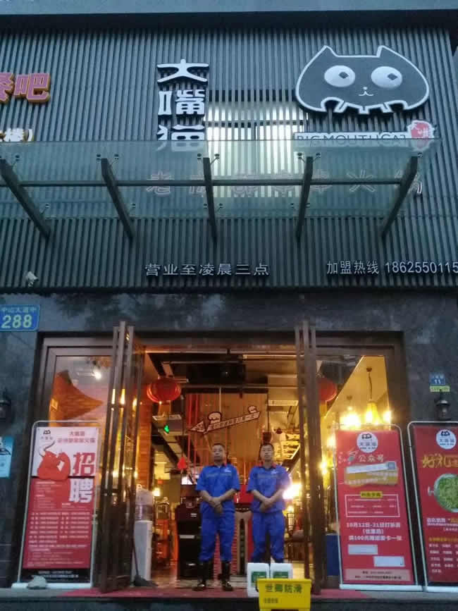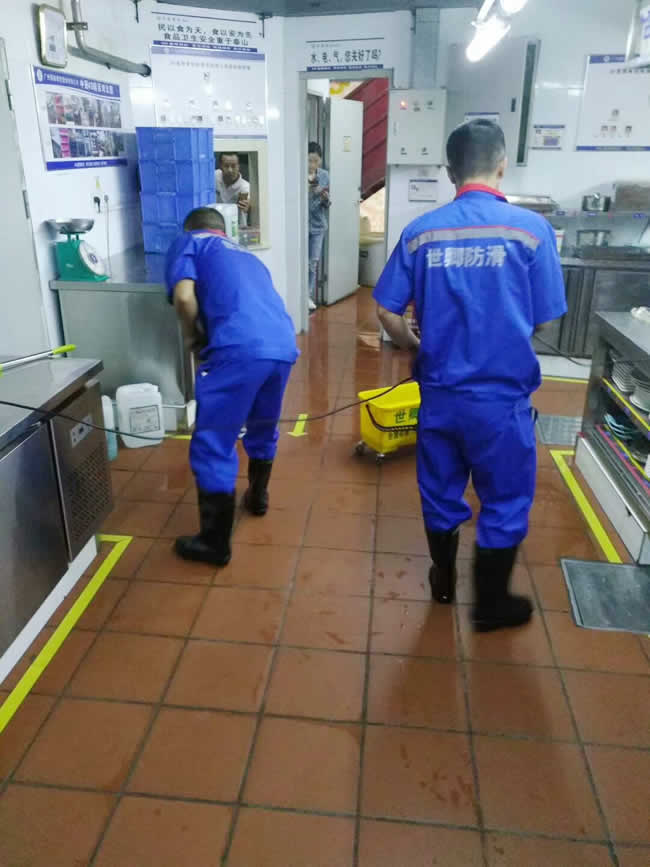 廣州利劍小分隊2018-10-24日老成都串串火鍋連鎖餐飲店(蒙古美食)(大嘴貓)兩家店鋪完成施工及驗收,效果牛!世卿防滑好品質!我為世卿代言。