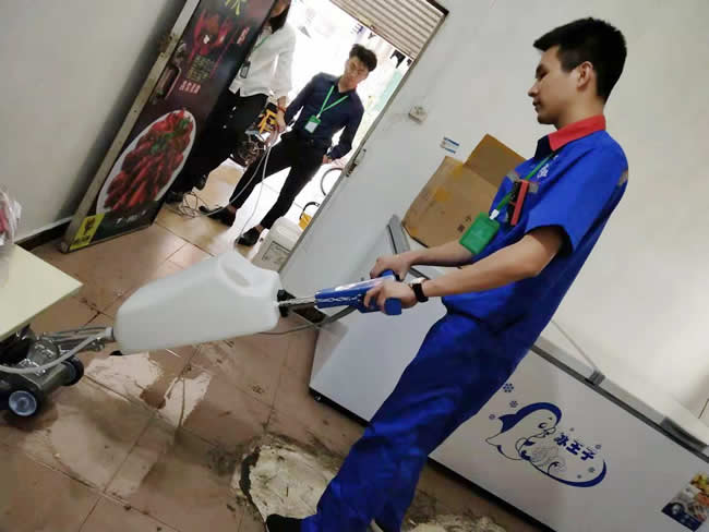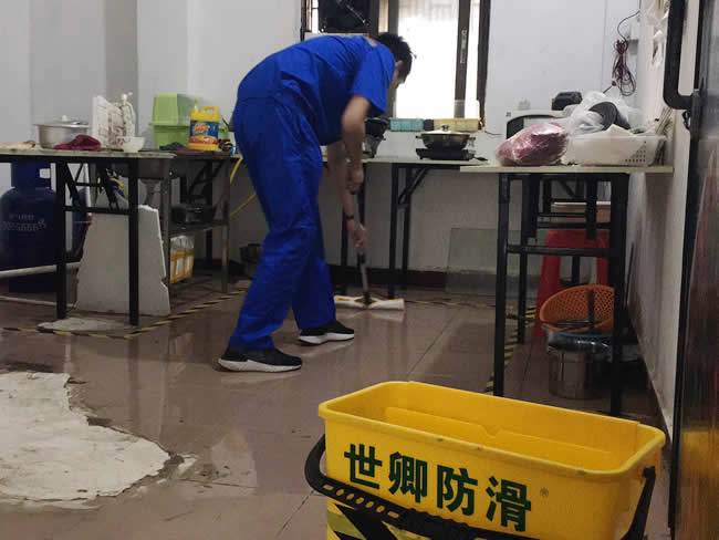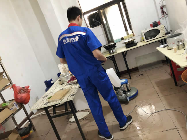 惠州市功夫小龍蝦餐廳河南岸分店地面工程,感謝江老板的支持,廚房地面經(jīng)常碰水、油,江老板擔心老婆滑到,已做好防滑處理。