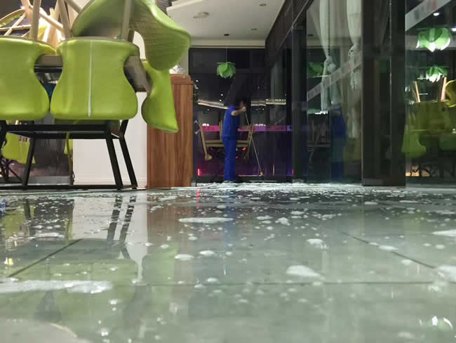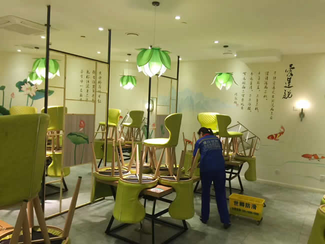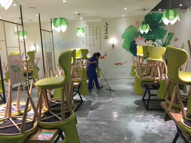 濕滑摔倒絕非偶然!2018年10月6日,重慶“藕然間”養生湯館防滑工程順利完工。重慶世卿防滑團隊在布景清新的“藕然間”進行了全地面濕滑施工!