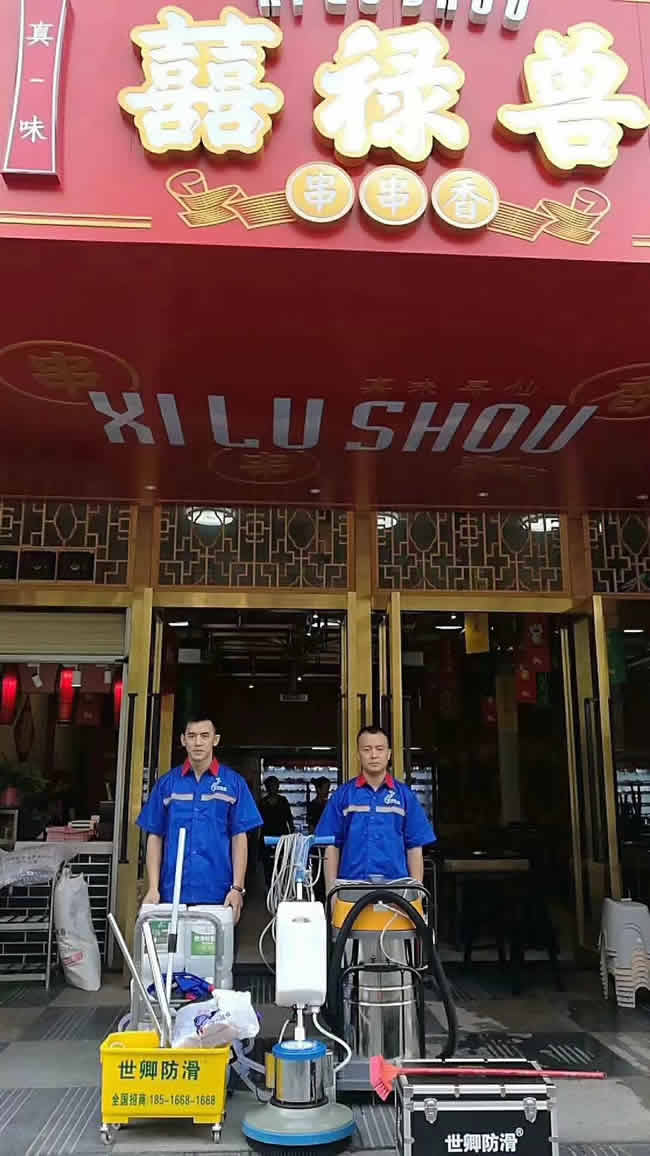 成都都江堰市喜祿獸串串香施工完成,老板非常認可世卿防滑的效果,老板還給介紹了兩個飯店做防滑處理。