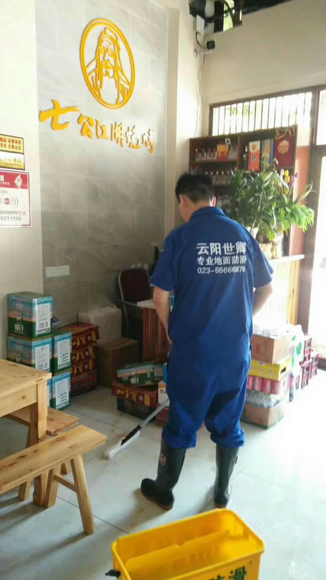 重慶市云陽縣七公江湖燒烤餐廳地面防滑處理工程
