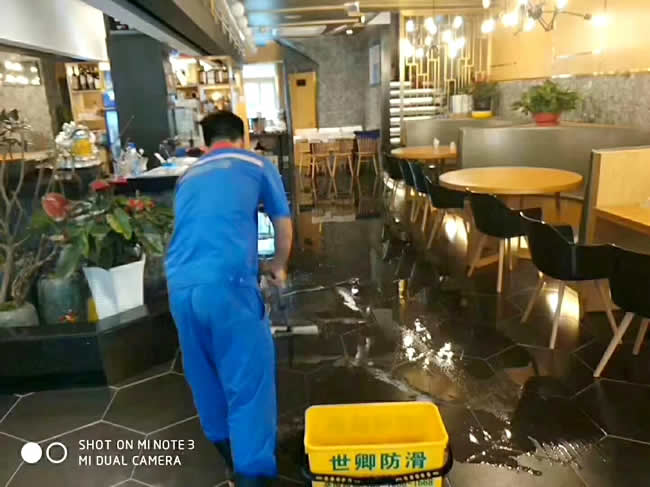 世卿防滑【上海總部】為上海青浦區徐涇鎮老毛家湘味樓防滑處理完成。新老客戶們不在擔心地滑了。關愛家人,預防滑倒。