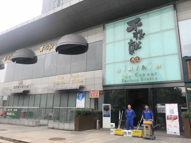 5-28上海市浦東新區秀沿路1082-1不將就海鮮蒸汽餐廳地面防滑處理完工 客戶的滿意就是我們實現夢想的動力。關愛行走安全 防止意外滑倒。自問您的餐廳還存在滑倒摔傷隱患么?