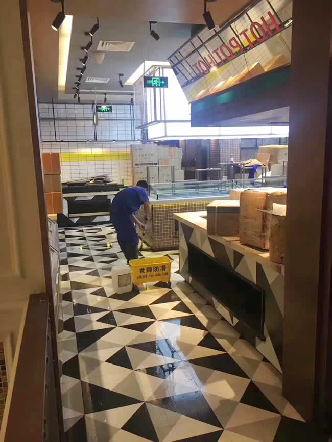 感謝楊總介紹客戶,浙江寧波奉化萬達(dá)廣場小火宴餐廳,未開業(yè)先做防滑處理,防滑效果非常認(rèn)可!