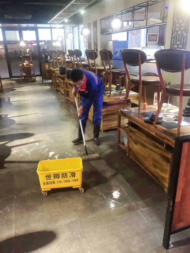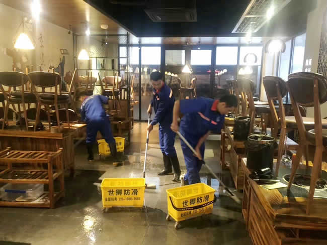 上海市浦東新區京味軒五星路店已做地面防滑處理,專門解決地面滑摔隱患