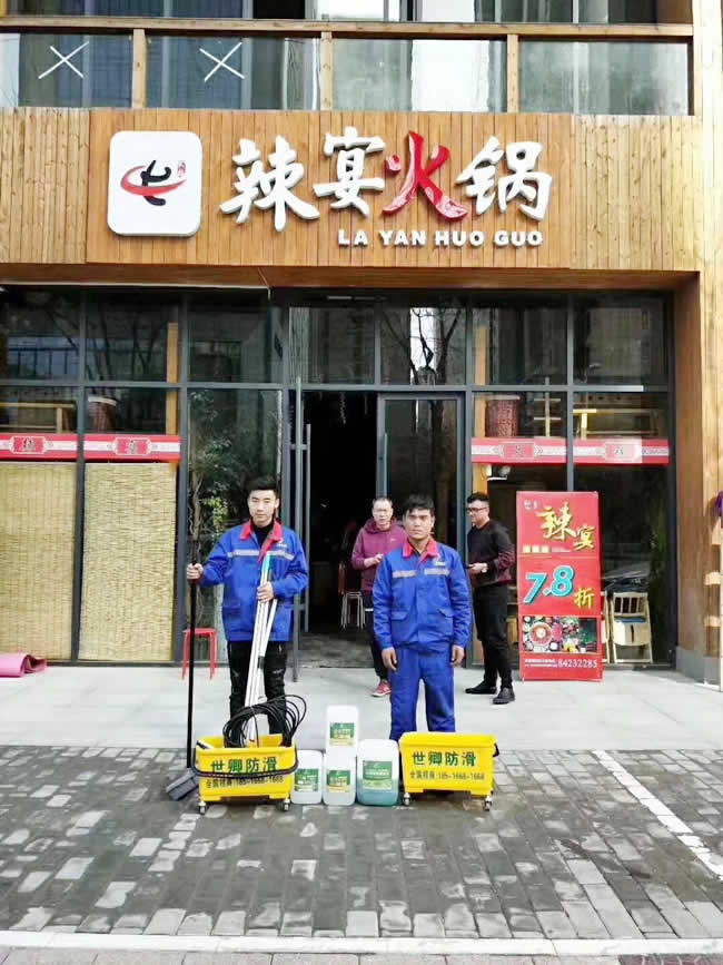 世卿防滑西安團(tuán)隊(duì)3月21日為西安市辣宴火鍋施工地面防滑完工,感謝李總的支持與信任!地面防滑刻不容緩,早一天做早一份安全!