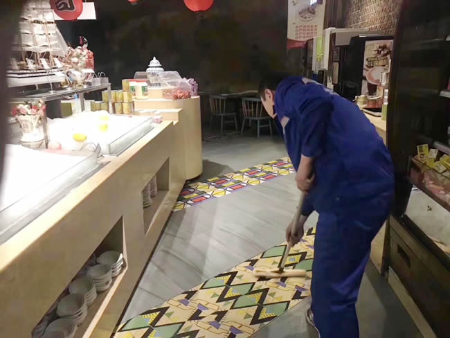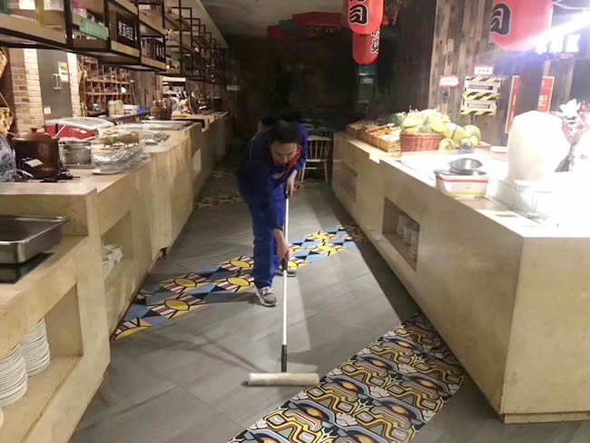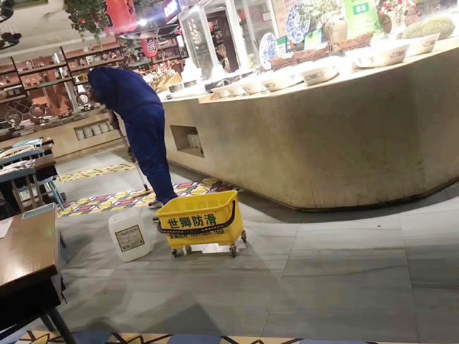 3.13號江西省餐飲協會副會長單位:亞馬遜(中國)環球美食百匯南昌萬達店,打樣后效果非常滿意,直接施工,為了客人的安全,防滑處理已完成。