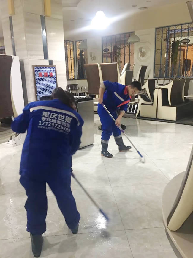 重慶一品莊特色菜2018年1月22日晚上已經完工,世卿防滑,地面防滑專業:解決一切地面濕滑問題。