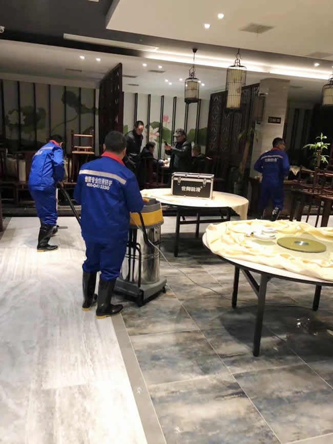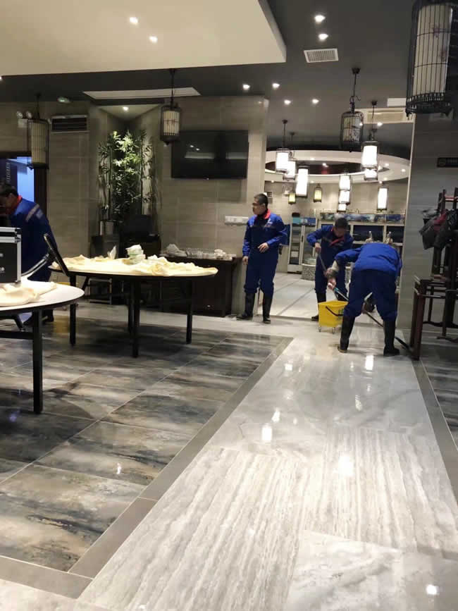 江陰總代理首單告捷,悅來飯莊地面防滑處理完工。世卿總部派技術人員全程指導,工程于2017年12月12日夜完美收工。