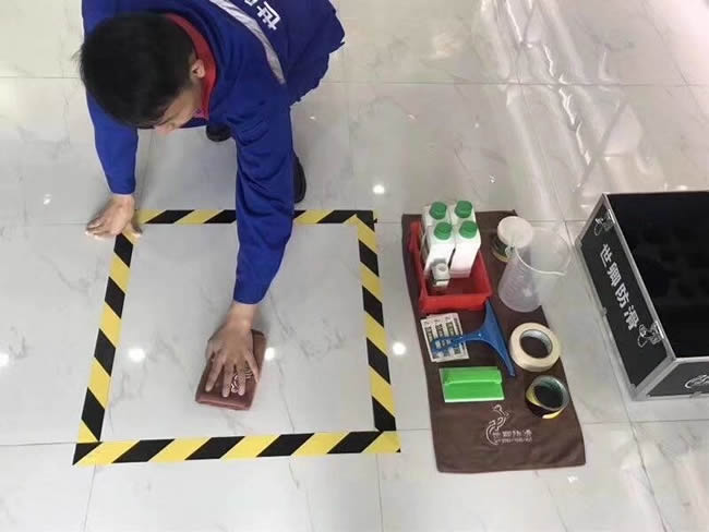 秦皇島市黑士地老菜坊于2017年12月11日下午地面防滑施工完畢,陳經理非常關注客人及員工的行走安全,對世卿防滑非常滿意。關愛行走安全,防止意外滑倒。