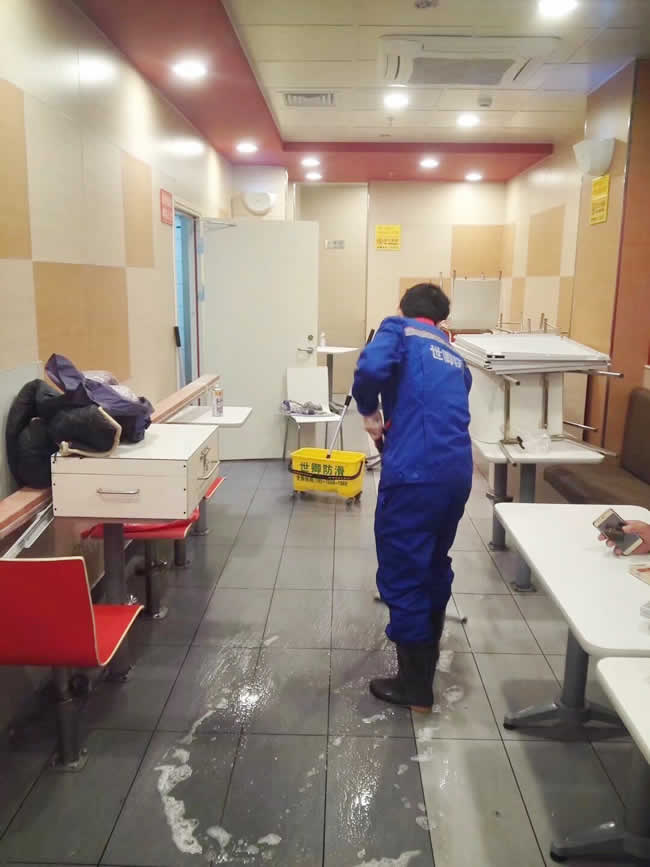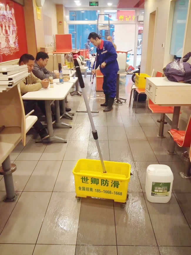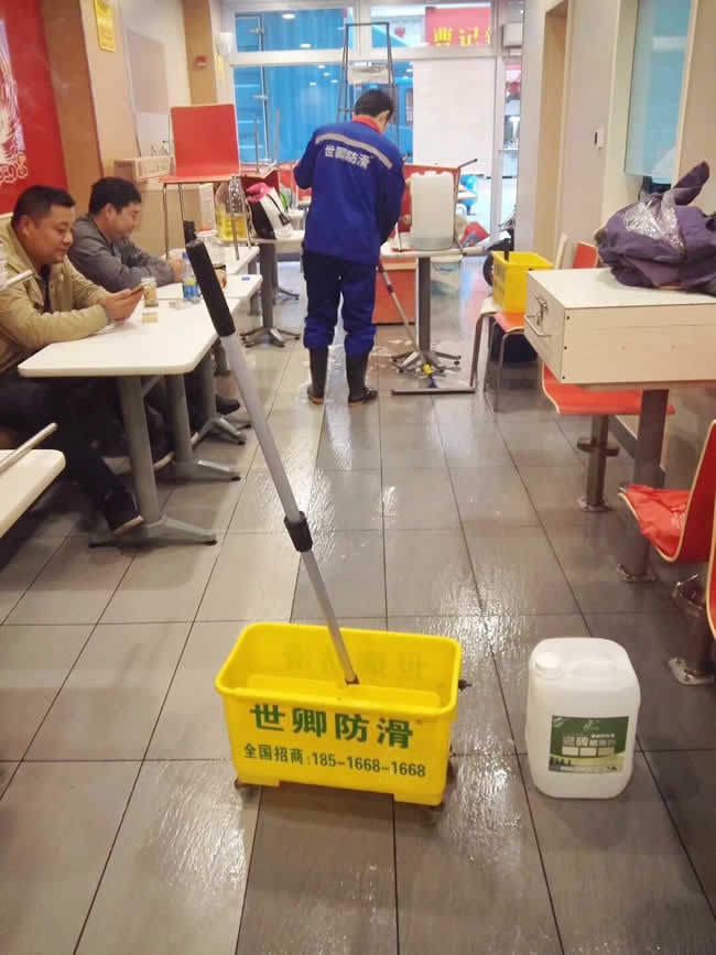 上海振鼎雞西江灣路店地面防滑處理于2017年11月19日下午完工。