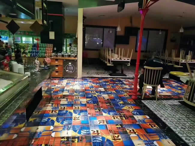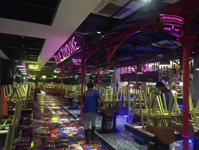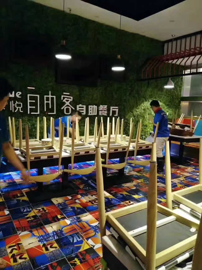 東莞大嶺山樂悅自由客海鮮自助餐廳~在總部強大支持,廣州分部的給力協助下,連續兩晚順利施工完成,未做防滑前地面遇水油基本不敢正常行走,做完后員工,顧客再也不用擔心腳下隨時打滑的問題;關注行走安全,預防意外滑倒! 東莞地面防滑請聯系:鄭小姐18928266573