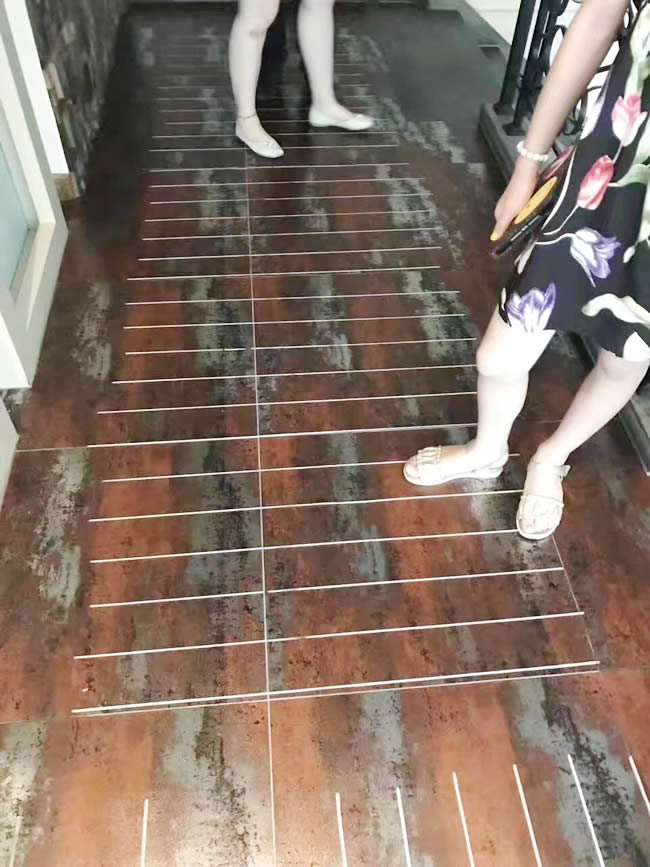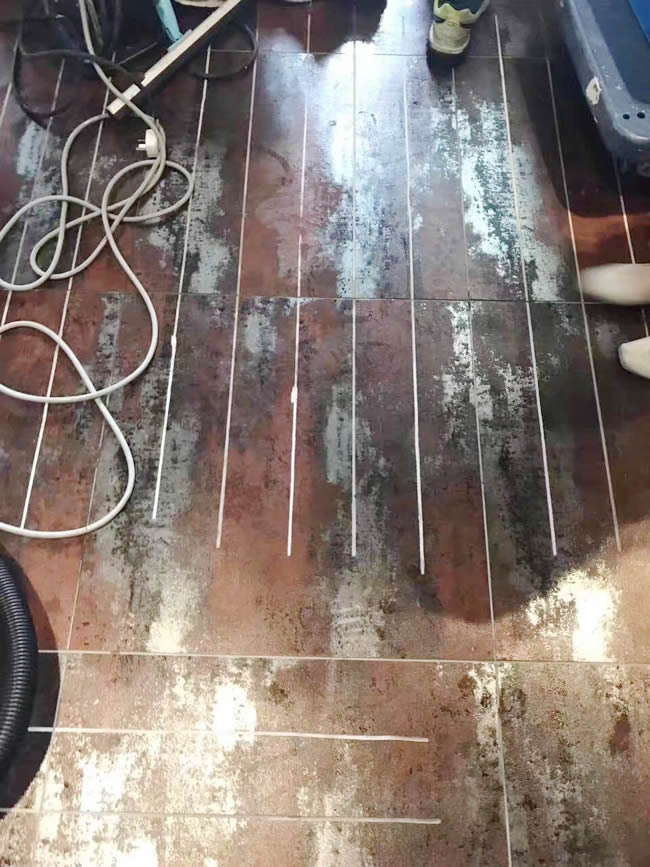 上海松江臺灣風(fēng)味料理地面防滑處理現(xiàn)場,世卿準(zhǔn)代理商實地考察感受強大防滑效果。注意:此地面太滑店家實在沒有辦法,就發(fā)重金對瓷磚釉面進(jìn)行開槽處理,結(jié)果更滑,在準(zhǔn)備換磚的情況下,世卿防滑出現(xiàn)了,完美解決了地面濕滑難題,為店家解決了一大難題