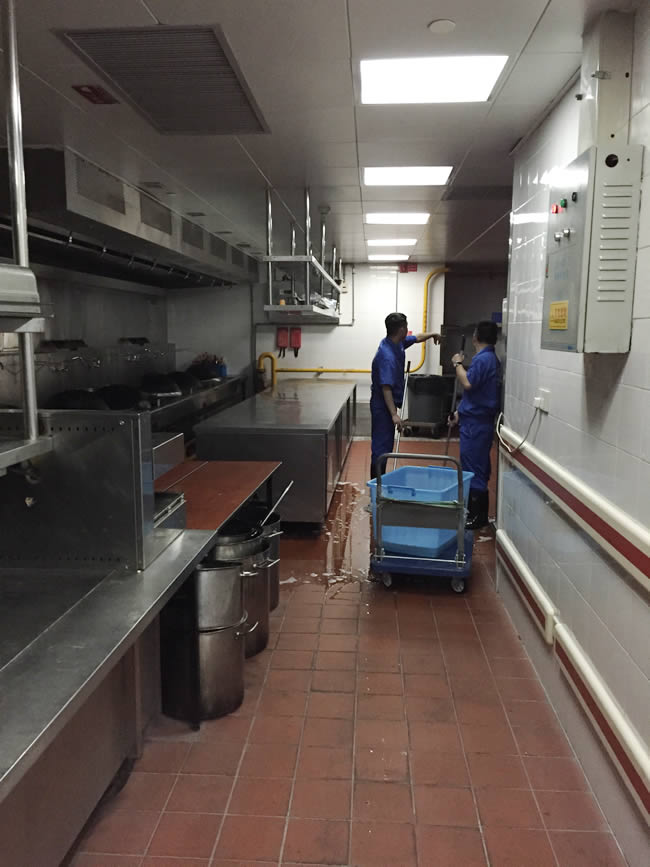 祝賀世卿防滑防護科技有限公司于2015年6月完成對溫州喜來登酒店的地面防滑施工工程。 上海世卿防滑防護科技有限公司專業研發,生產,銷售地面防滑材料,并承接大面積防滑工程,專業施工團隊,為您上門服務!我們堅持秉承創造綠色環保、營造安全健康,創新發展、不斷超越的經營理念以及客戶至上的核心價值觀,一直在努力做對社會有意義的事! 溫州喜來登酒店后廚地面材質為釉面磚,最常見的這種材質的地面一旦遇水非常濕滑,容易造成行人行走滑倒,存在極大的安全隱患,降低了工作人員的工作效率,經過我司的防滑處理,保持著原有的地面原貌,也解決了客戶的地面濕滑問題,得到了溫州喜來登酒店的認可和極高評價。我司專業承接地面防滑處理、瓷磚防滑處理、地磚防滑和大理石防滑處理工程服務,以及銷售地面防滑產品——世卿防滑劑。歡迎致電咨詢:021-20981810。廚房地面防滑處理完成