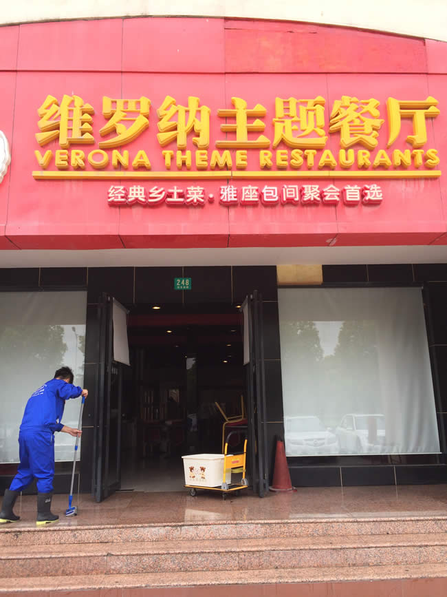 上海松江區榮樂西路248號(近樂都西路) 維羅納主題餐廳于2014年4月25日完成地面防滑施工。