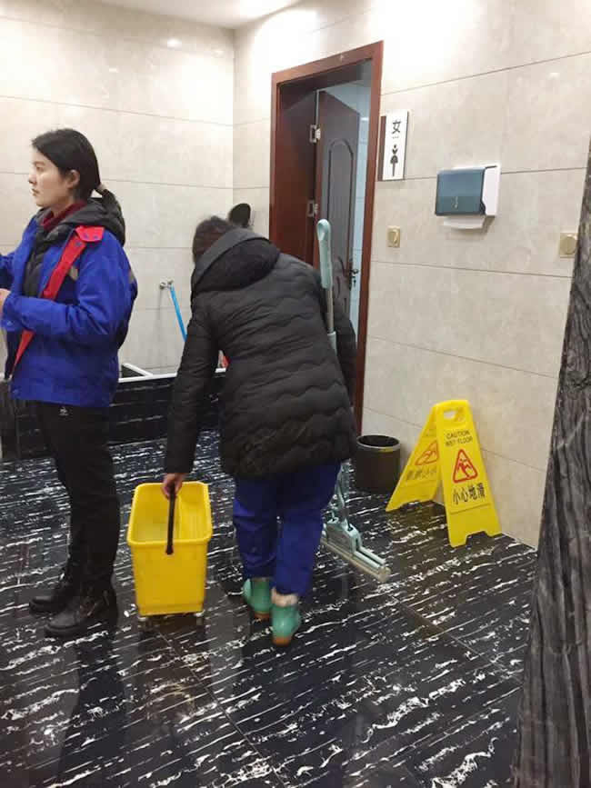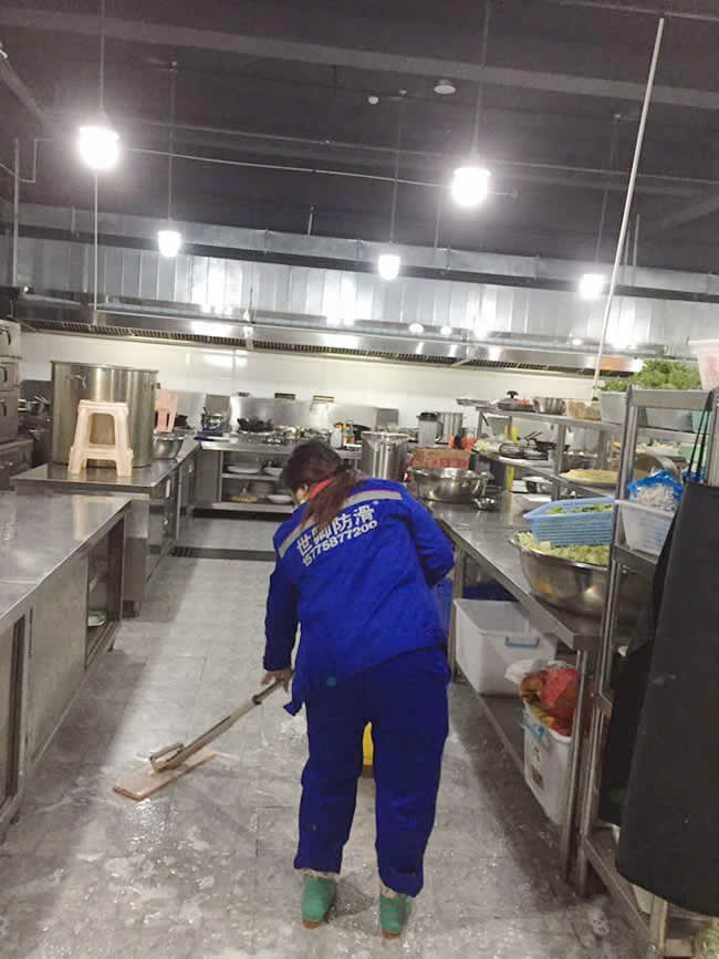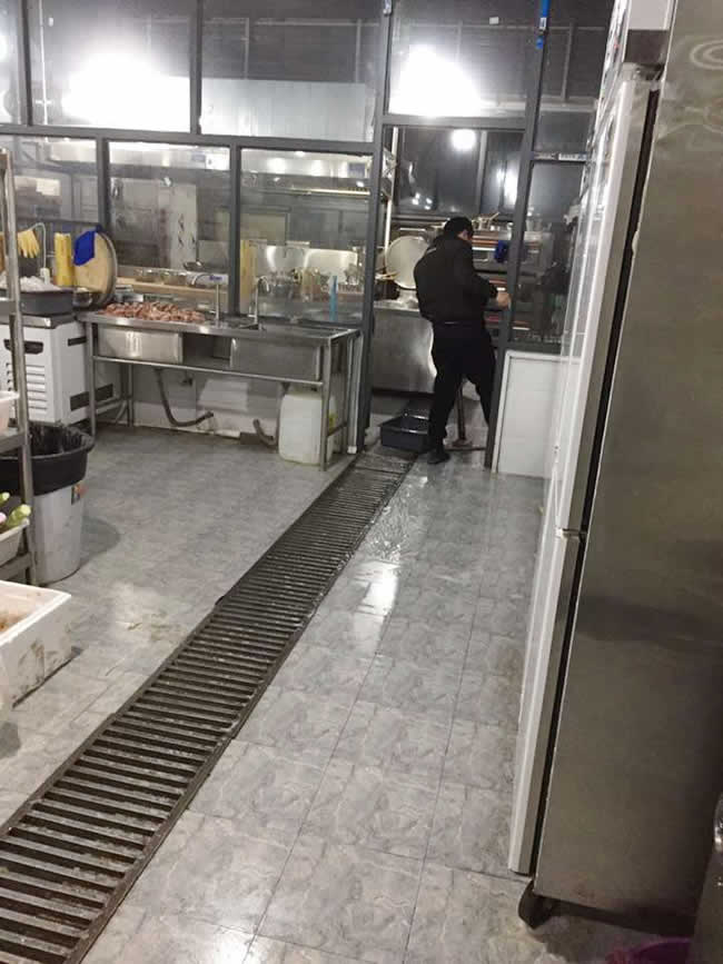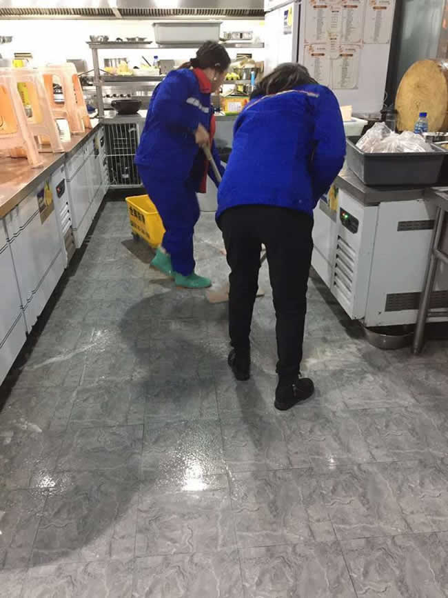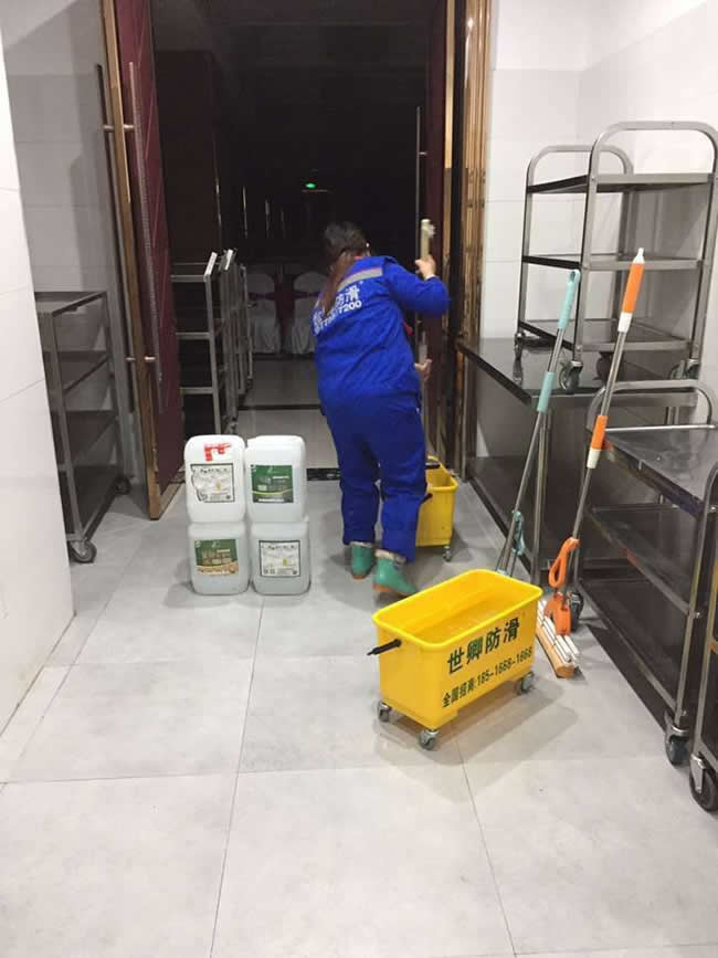 四川南充市金八里生態酒店廚房和通道衛生間的防滑處理現在完工了,只是到凌晨兩點半了,各位辛苦了!