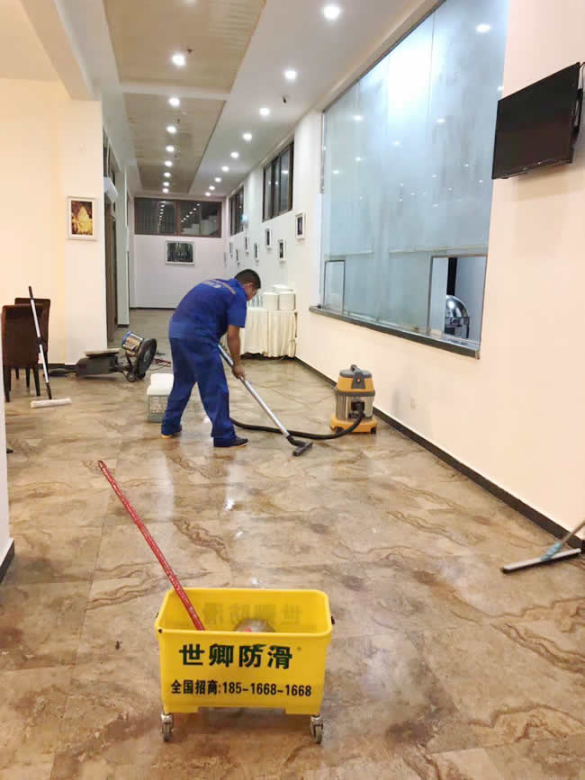 世卿防滑【云南團隊】9月1日,為云南西雙版納中科院植物園王蓮酒店餐廳大堂二期施工完畢。為這所酒店送去行走安全、防止意外滑倒!酒店領導高度重視地面防滑,前期對酒店走廊、廚房、進行了防滑處理。感謝酒店領導再次對世卿防滑的高度認可,感謝酒店有你們這樣關愛員工行走安全的好領導。