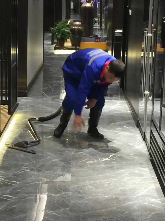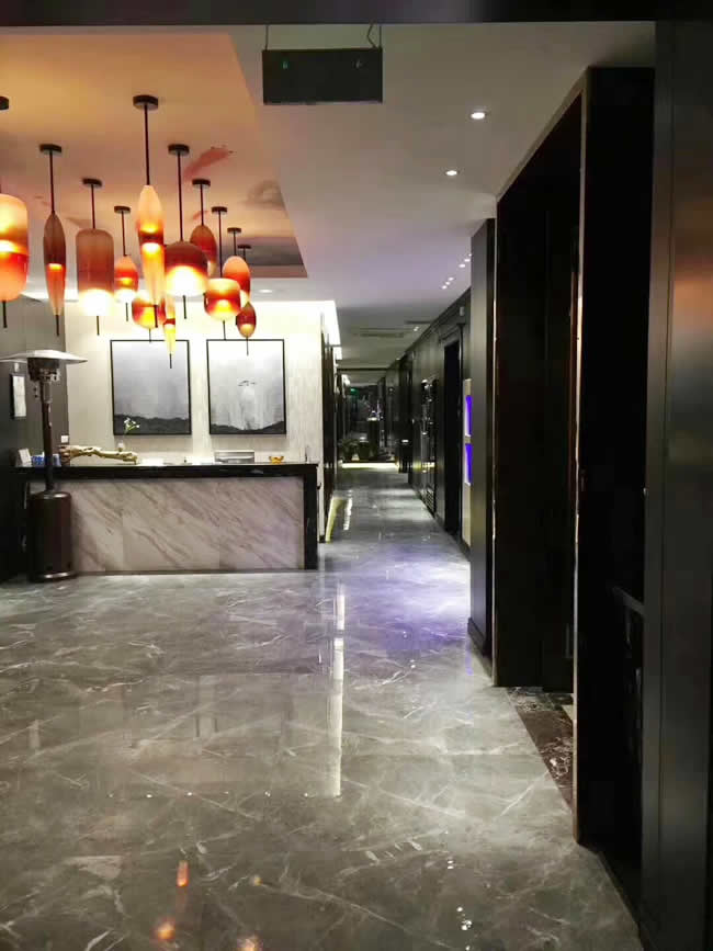 【世卿防滑武漢團隊】于2018-3-6號為武漢市咸寧食䃼園酒店地面進行防滑施工,解決了濕滑的憂患。